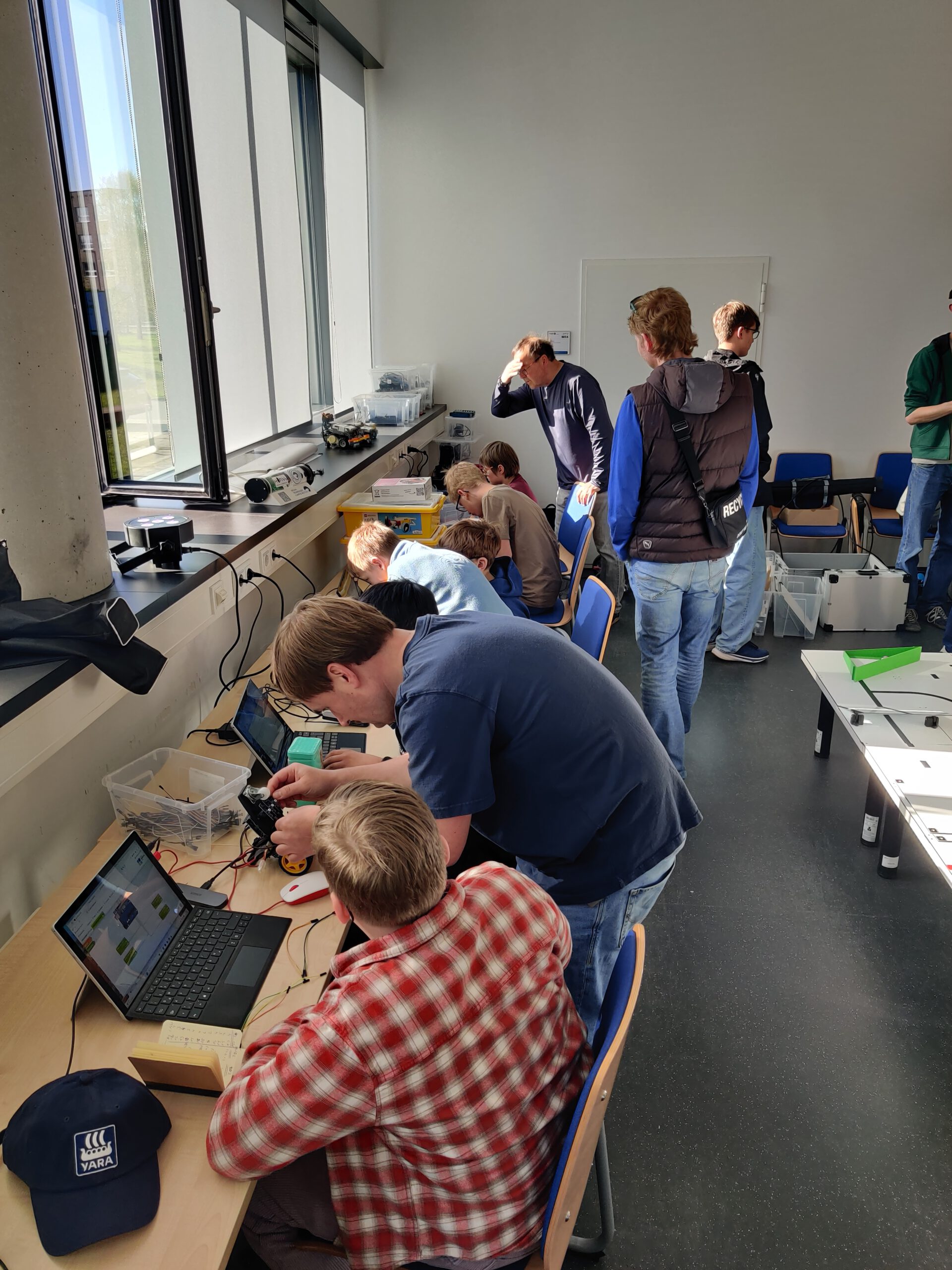 An verschiedenen Stationen wurde getüftelt, programmiert und optimiert. Kinder, Jugendliche und Erwachsene beschäftigten sich mit kleinen Robotersystemen, verglichen Lösungen und diskutierten, warum ein Roboter einer Linie folgt, an Kurven scheitert oder nach einer kleinen Anpassung plötzlich deutlich besser fährt. Genau diese Mischung aus Experimentieren, Fehleranalyse und Erfolgserlebnis macht den besonderen Reiz projektorientierter MINT-Bildung aus.